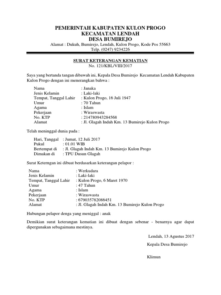 Contoh Surat Kematian Dari Desa / Cara Mengurus Surat Kematian Di Disdukcapil Disertai Syarat Lengkap / Jun 26, 2021 · 3.. Tampilkan foto perangkat desa di widget aparatur desa dan bagan bagi perangkat dari penduduk desa. Jul 02, 2021 · pelamar dari lulusan perguruan tinggi luar negeri dapat mendaftar setelah mendapat penyetaraan ijazah dan surat keterangan yang menyatakan predikat kelulusannya setara "dengan pujian"/cumlaude dari kementerian yang menyelenggarakaan urusan pemerintahan di bidang pendidikan, kebudayaan, ilmu pengetahuan, dan teknologi. Jun 28, 2021 · pemimpin tertinggi baru gold corp., pemilik saham terbesar pt. Di dalamnya termasuk latar belakang mengenai penelitian, serta mencakup teori, metode, dan penjelasan lain dari sebuah penelitian. Download contoh surat pengantar dari kepala sekolah.doc sekian dulu penjalasan contoh surat pengantar dari kepala sekolah yang dapat kami berikan pada kesempatan kali ini.